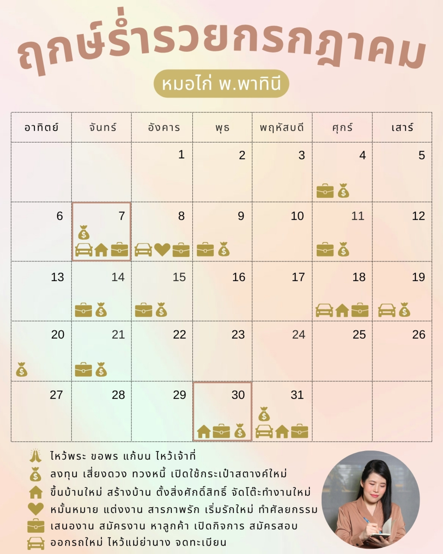 วันที่ 27 มิ.ย.68 "หมอไก่" นักพยากรณ์ชื่อดัง โพสต์คลิปผ่านอินสตาแกรม @morkai99 ระบุว่า เซฟไว้ก่อนค่ะ !! ฤกษ์ร่ำรวยเดือนกรกฎาคม โดย หมอไก่ พ.พาทินี ⭐ ฤกษ์ดีที่ผ่านการคำนวณมาอย่างละเอียด สามารถใช้ได้ทุกคน ใช้แล้วดีแน่นอน 200% ค่ะ 🔮 เดือนนี้มีฤกษ์ดีพิเศษ คือ วันที่ 7 และ 30 ก.ค. 68 นะคะ