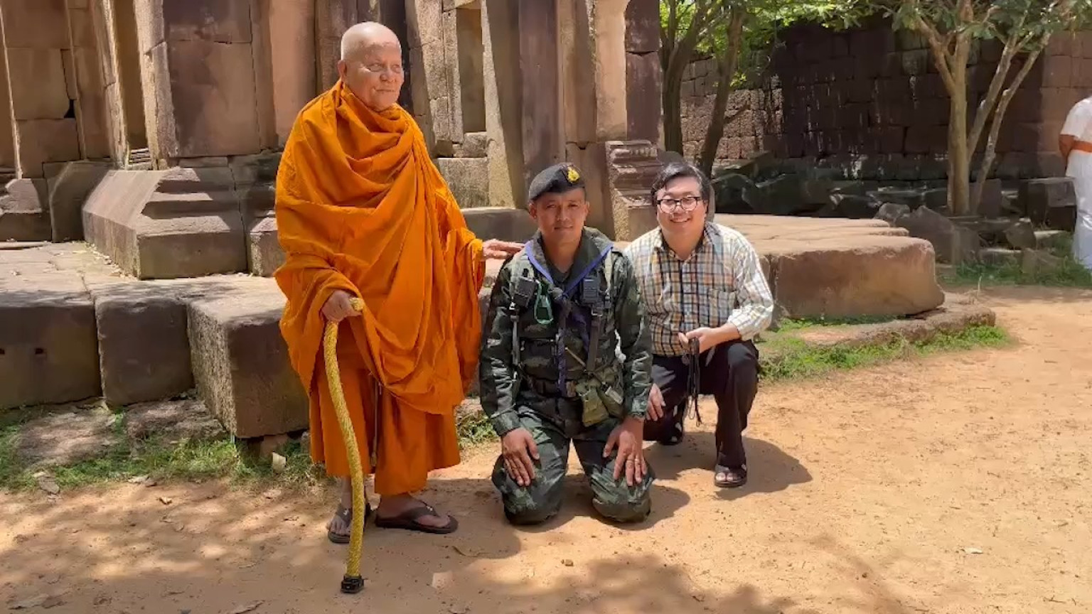 สุรินทร์-จากกรณี มีชาวกัมพูชา ขึ้นมาร้องเพลงที่ตัวปราสาทตาควาย ต.บักได อ.พนมดงรัก จ.สุรินทร์ เมื่อวันที่ 18 มิถุนายน 2568 ผ่านมา ซึ่งทางทหารพรานไทยที่ประจำการอยู่บริเวณปราสาทตาควาย ได้รีบเข้าไปห้ามและเตือนให้หยุดการกระทำดังกล่าว และล่าสุดเมื่อวานนี้(19 มิ.ย.)เวลาประมาณ 10.00 น.ที่ปราสาทตาเมือนธม ต.ตาเมียง อ.พนมดงรัก ได้มีชาวกัมพูชา นำโดยผู้ชายแต่งชุดธรรมดา นำคณะพระสงฆ์ประมาณ 15 รูปและชาวกัมพูชาอีกจำนวนหนึ่ง มายืนที่จุดจีพีเอสและขวางประตูทางเข้าตัวปราสาทตาเมือนธม พยายามจะมาแสดงเชิงสัญลักษณ์ และพูดใส่คนไทยที่เข้าเที่ยวชมปราสาท ในลักษณะจะไม่ให้เข้าและข้ามผ่านหลักจีพีเอสไป