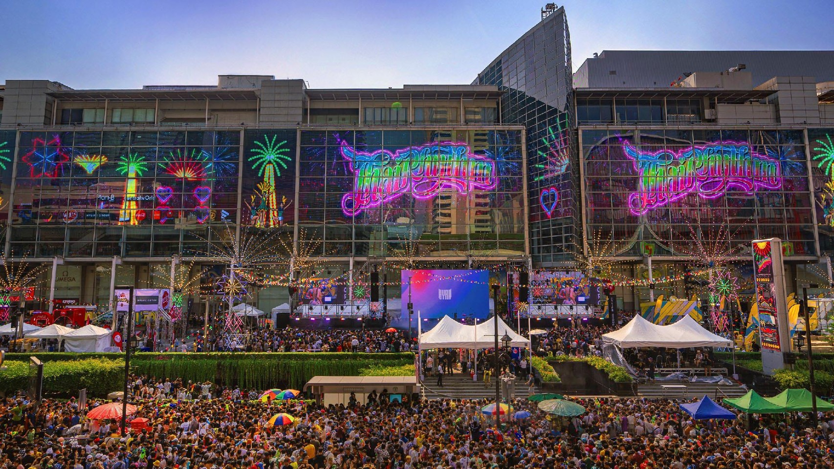 ภายนอกศูนย์การค้า เป็นโซนบันเทิง ตั้งแต่ลานเล่นน้ำ สวนสนุกเป่าลม บ่อบอล ตลอดจน Music Festival จากศิลปิน 300 ชีวิต โดยเซ็นทรัลเวิลด์ จะจัดงาน centralwOrld Songkran Fest 2025 ดึงศิลปินแรปเปอร์ x ศิลปินลูกทุ่ง เช่น โจอี้บอย, ลำไยไหทองคำ, จ๊ะ นงผณี, D Gerrard-Zbing Z. เป็นต้น