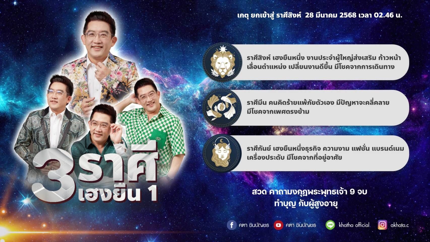 ในช่วงนี้ อ.คฑา ชินบัญชร เผย 3 ราศี เฮงยืนหนึ่ง ทั้งการงาน การเงิน ความรัก ใครจะเฮง ใครจะปังรับดาวเกตุย้าย ยกเข้าสู่ ราศีสิงห์ ตั้งแต่ 28 มีนาคม 2568