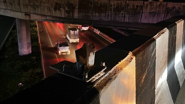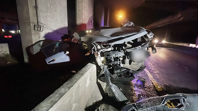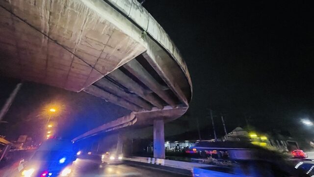 ที่เกิดเหตุบนสะพานเกือกม้าจุดกลับรถความสูง 5 เมตร ขอบสะพานมีรอยชนจนป้ายสัญญาณสีส้มหักบริเวณด้านล่างเกาะกลางถนนระหว่างทางด่วน พบรถยนต์ ยี่ห้อฮอนด้า รุ่นซีวิค ทะเบียน กรุงเทพมหานคร สภาพตกลงมาตัวรถพังเสียหายยับเยิน