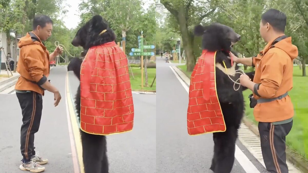 เมื่อเร็ว ๆ นี้ คลิปไวรัลจากสวนสัตว์แห่งหนึ่งในเมืองซวนเฉิง มณฑลอันฮุย ประเทศจีน กำลังถูกพูดถึงสนั่น หลังมีภาพหมีดำสวมผ้าคลุมคล้ายจีวรพระจีน ยืนสองขาและเดินเคียงข้างเจ้าหน้าที่ได้อย่างเป็นธรรมชาติ จนหลายคนเข้าใจผิดคิดว่าเป็นคนใส่ชุดมาสคอต