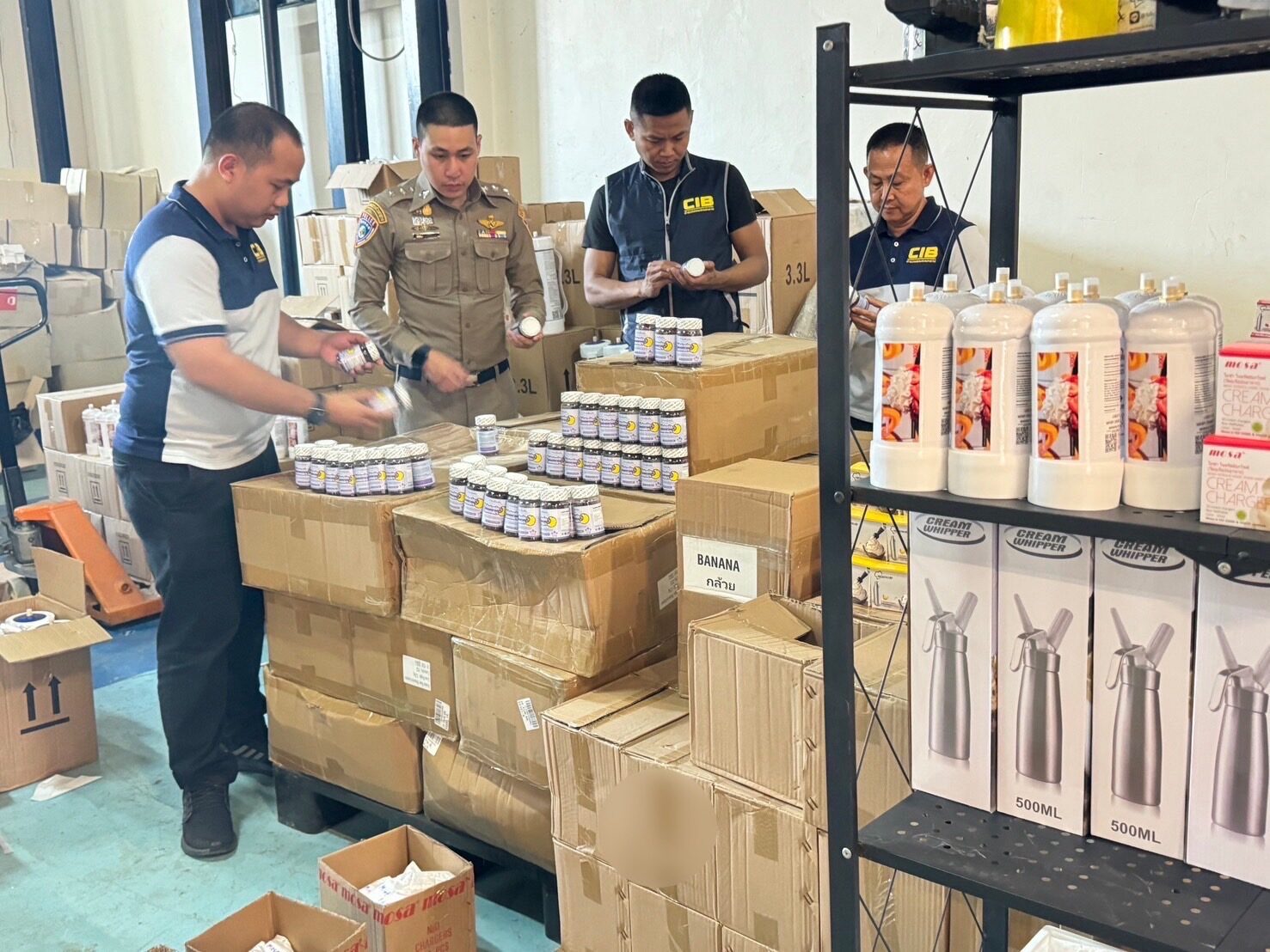 ลุยจับตัดวงจร แหล่งผลิต ลูกโป่งแก๊สหัวเราะ บุกตรวจโกดังแก๊สวิปครีมไนตรัสออกไซด์ กว่า 7 หมื่นหลอด ลูกโป่งอีก 500 ลูก รวมมูลค่า 2 ล้าน