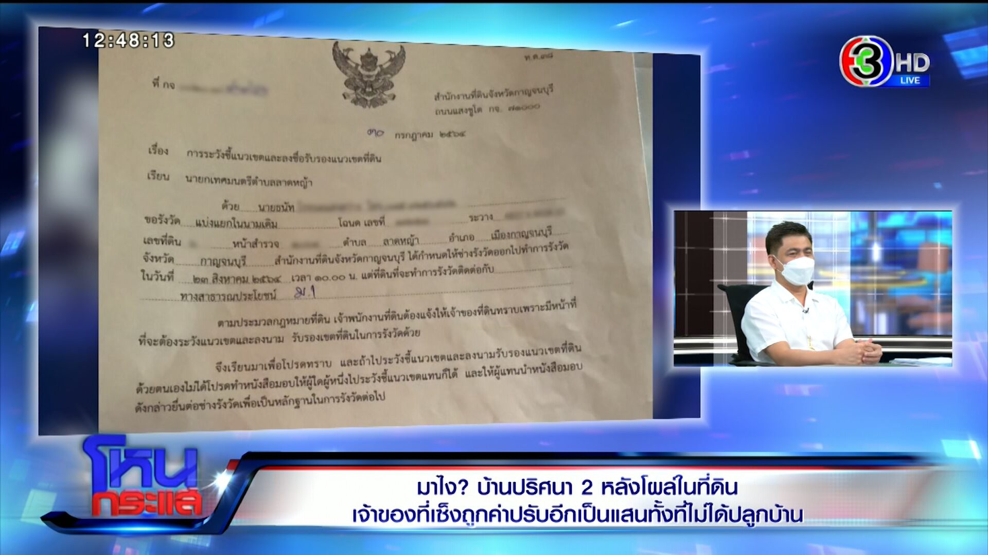 รายการโหนกระแสวันที่ 21 พ.ย. 65 “หมวย อริสรา กำธรเจริญ” ดำเนินรายการแทน “หนุ่ม กรรชัย กำเนิดพลอย” ผลิตในนามบริษัท ดีคืนดีวัน จำกัด ออกอากาศทุกวันจันทร์-ศุกร์ เวลา 12.35 น. ทางช่อง 3 กดเลข 33 ได้สัมภาษณ์ ไพรัตน์ เจ้าของที่ดิน, นิด คนไปสร้างบ้านสองหลัง , เอกภพ เหลืองประเสริฐ เพจสายไหมต้องรอด และ ปรเมศวร์ อินทรชุมนุม อัยการอาวุโส สำนักงานสอบสวน