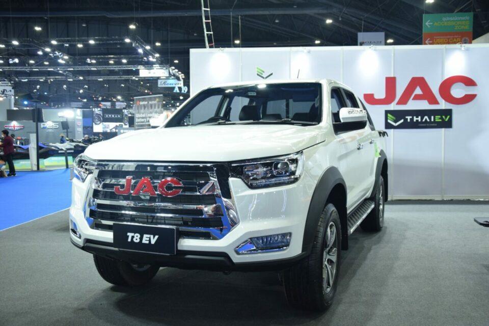 ในชื่อ JAC T8 EV ในร่างกระบะสี่ประตู หน้าตาอาจจคล้ายกับ Toyota Hilux Vigo หรูหราด้วยชุดโครเมียมจากกระจังหน้าพร้อมไฟหน้า Projector พร้อมไฟส่องกลางวัน DRL LED ในโคมเดียวกัน รับกับกันชนหน้าทรงเท่ ประดับด้วยไฟตัดหมอกหน้า ด้านข้างบึกบึนกับดีไซน์ที่แกร่งฉกาจ