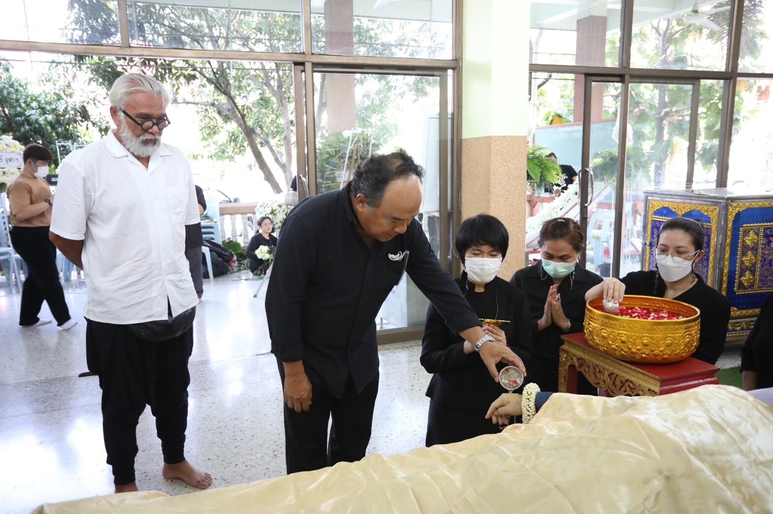 ก็ขอให้เพื่อนถนอมไปสู่สวรรค์ ไปสู่ภูมิภพที่ถนอมปรารถนา วันนี้ผมก็เห็นเขามีงาน ผมรู้สึกว่าเขาสะอาดและเขาก็สมบูรณ์มาก ต้องพูดคำว่าสมบูรณ์ทั้งภายนอกและจิตใจของเขา มางานเขาแล้วมันรู้สึกอย่างนั้นจริงๆ ตอนนี้ผมก็รู้สึกว่าเพื่อนได้ทำทุกอย่างสมบูรณ์เต็มที่แล้วครับ”.