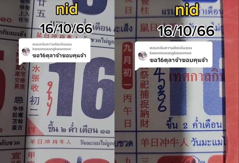 ล่าสุดผู้ใช้ติ๊กต็อก nid8857 แชร์เลขปฏิทินจีน เพื่อเป็นแนวทางการซื้อลอตเตอรี่ให้กับคนรักตัวเลขไปลุ้นรางวัลกัน ในงวดวันที่ 16 ต.ค.2566 โดยเป็นตัวเลขของปฏิทินจีน 5 ฉบับ ที่ต้องไปส่องไปลุ้นกันเอาเองว่าเป็นเลขอะไร