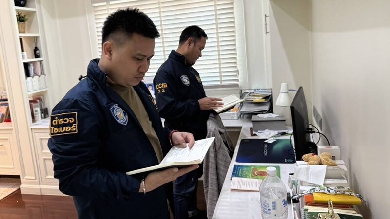 ตำรวจไซเบอร์ นำกำลังเจ้าหน้าที่บุกค้นบ้านพี่ชาย นักการเมืองท้องถิ่นเมืองปากน้ำ เอี่ยวคดีหลอกลงทุนและฟอกเงิน หลังพบหลักฐานสำคัญ ด้าน เจ้าตัวจ่อเข้าให้ปากคำ