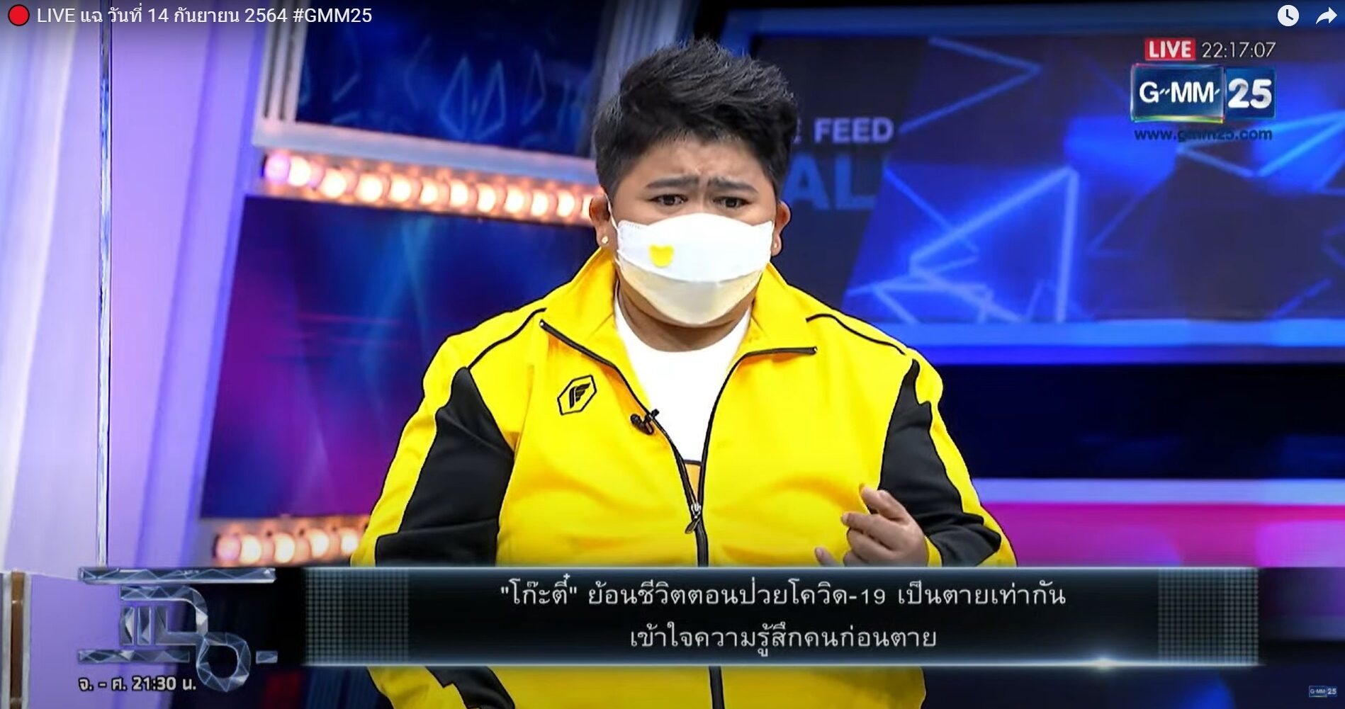 ตอนป่วยหนูเข้าใจพี่ค่อมรู้สึกยังไง มันว้าเหว่มาก อยู่คนเดียว ปรึกษาใครไม่ได้ หนูไม่ชอบเล่นโซเชียล ถามว่าตอนนั้นทำยังไง โก๊ะตี๋ กล่าวว่า เราคิดเสมอเรายังมีคนที่เรารัก เรายังมีแม่ที่ต้องดูแล เรามีภาระอีกหลายอย่าง