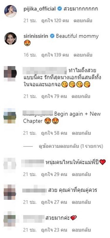 โดยนอกจากพี่ๆน้องๆในวงการบันเทิง และเหล่าแฟนคลับ จะแห่คอมเมนต์เป็นเสียงเดียวกันว่า คุณแม่สวยมากแล้ว