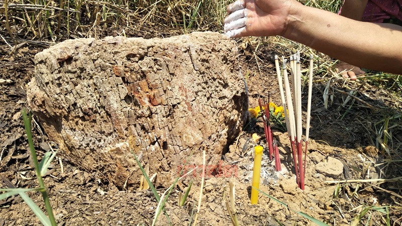 ชาวบ้านแห่ขอโชคลาภ ต้นตะเคียน กลายเป็นหิน หลังพบภายในสระน้ำโบราณ
