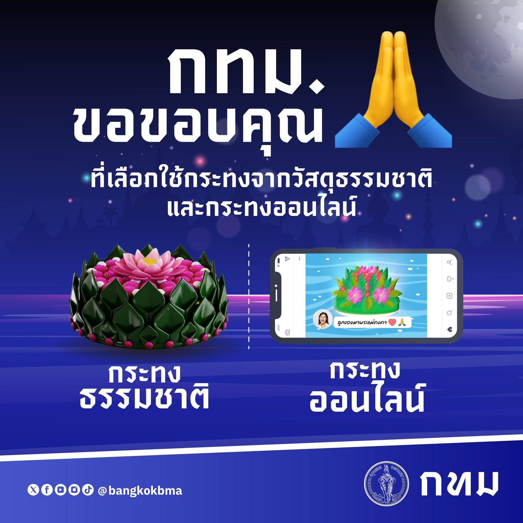 กทม. เปิดยอดกระทง ปี 2568 ลดลงจากปี 67 มากถึง 1.2 แสนใบ แต่กระทงที่ทำจากธรรมชาติลดลง และ กระทงจากโฟมเพิ่มขึ้น ลอยกระทงออนไลน์ ลดลง