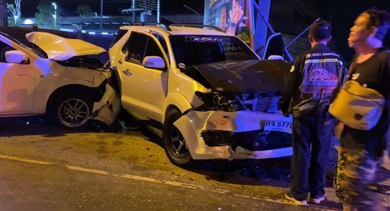 กระบะซิ่งแข่งกัน พุ่งอัดฟอร์จูนเนอร์ ชนยับ4คัน เผยกล้องวงจรปิดจับภาพได้