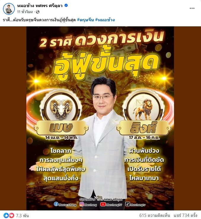 เตรียมตัวรับความรวยครึ่งเดือนหลังของเดือนกุมภาพันธ์ 2569 ด้วยความปังความเฮงเลย ราศีไหนบ้าง หมอช้าง ทศพร โพสต์เผยต้อนรับวันตรุษจีนด้วยว่า