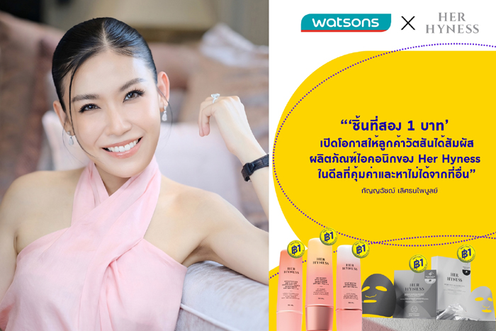 ด้าน กัญญฉัชฌ์ เลิศธนไพบูลย์ หนึ่งในผู้ก่อตั้งและ CEO แบรนด์ Her Hyness (เฮอ ไฮเนส) คลีนบิวตี้อันดับ 1 กล่าวถึงการมอบสิ่งที่ดีที่สุดเพื่อผู้บริโภคทั่วประเทศว่า “ปีนี้เรานำมาสก์ดำตัวดัง หนึ่งในสินค้าขายดีระดับไอคอนิกที่ได้รับการตอบรับที่ดีเสมอมาเข้าร่วมแคมเปญสุดยิ่งใหญ่นี้กับวัตสัน เพื่อเพิ่มทางเลือกความคุ้มค่าให้กับลูกค้า รวมถึงเป็นโอกาสดีที่ลูกค้าจะได้สัมผัสประสบการณ์ผิวโกลว์ด้วยเทคโนโลยี Binchoplatinum ในราคาพิเศษ ซึ่งเราหวังว่าจะเป็นโปรโมชันที่ถูกใจคนรักผิวทุกคน”