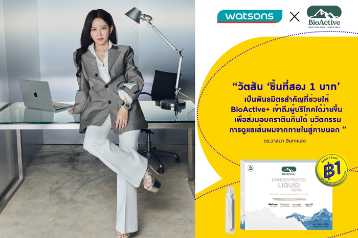 นอกจากความคุ้มค่าแล้ว แคมเปญนี้เปิดโอกาสให้สินค้ากลุ่มนวัตกรรมเข้าถึงผู้บริโภคได้ง่ายขึ้น โดย ดร.วาสนา อินทะแสง ผู้ก่อตั้ง บริษัท ไบโอแอคทีฟ เอ็นแซต 1984 จำกัด ผู้จัดจำหน่ายผลิตภัณฑ์เสริมอาหาร ไบโอแอคทีฟ พลัส (BioActive+)กล่าวถึงการนำเสนอนวัตกรรมใหม่สู่ผู้บริโภคในครั้งนี้ว่า “แคมเปญ ‘ชิ้นที่สอง 1 บาท’ ของวัตสัน เราตั้งใจนำเสนอความคุ้มค่าให้กับผู้บริโภค ด้วยสินค้าไฮไลท์อย่าง Concentrated Liquid Kera ที่มาพร้อมนวัตกรรม ‘เคราตินกินได้’ แบบ Drop&Drink ดื่มเพื่อการการบำรุงผม เล็บ และผิวจากภายใน เพื่อตอกย้ำความตั้งใจในการส่งมอบผลิตภัณฑ์ดูแลสุขภาพเส้นผมที่มีประสิทธิภาพในราคาที่เข้าถึงได้ง่ายขึ้น ตอบโจทย์ไลฟ์สไตล์ คนรุ่นใหม่ที่ต้องการผลลัพธ์ที่ชัดเจนและรวดเร็วผ่านพันธมิตรคนสำคัญอย่างวัตสัน”