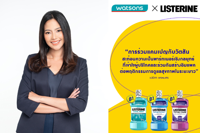 สอดคล้องกับเปมิกา พรหมศร ผู้อำนวยการฝ่ายขาย ลิสเตอรีน ประเทศไทย ผู้นำผลิตภัณฑ์ดูแลช่องปาก ที่มองเห็นโอกาสในการสร้างสุขอนามัยที่ดีในครั้งนี้ว่า “การเข้าร่วมแคมเปญกับวัตสัน เป็นโอกาสดีที่เราจะได้ขยายฐานลูกค้าและส่งต่อมาตรฐานการดูแลสุขภาพช่องปากให้เข้าถึงคนไทยได้มากขึ้น ผ่าน Hero Product อย่าง Listerine Cool Mint ซึ่งเราเชื่อว่าแรงดึงดูดของแคมเปญนี้ ไม่ใช่เพียงความคุ้มค่า แต่คือการสร้างความเชื่อมั่นว่าลูกค้าจะได้รับสินค้าคุณภาพจากแบรนด์ที่เชื่อถือได้ พร้อมช่วยกระตุ้นให้ผู้บริโภคหันมาดูแลสุขภาพช่องปากอย่างต่อเนื่องและสม่ำเสมอ รับกับเทรนด์การดูแลสุขภาพเชิงป้องกันในปีนี้”