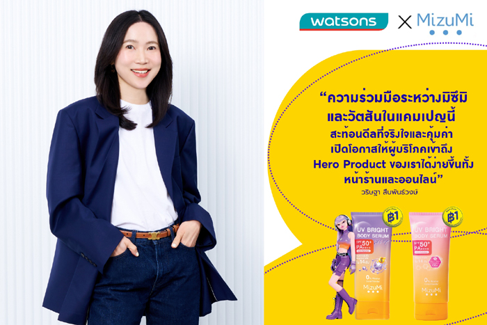 เช่นเดียวกับ วริษฐา สืบพันธ์วงษ์ ผู้ก่อตั้งและกรรมการผู้จัดการ บริษัท มิซึฮาดะ กรุ๊ป จำกัด ผู้ผลิตแบรนด์สกินแคร์ มิซึมิ (Mizumi)ที่มองว่าแคมเปญนี้คือช่วงเวลาที่ดีของผู้บริโภคว่า “เรามองว่าแคมเปญนี้เป็นเหมือนช่วงเวลาพิเศษที่มิซึมิและวัตสันจะได้ร่วมกันมอบความคุ้มค่าที่สุดแห่งปีให้กับลูกค้าทุกคน เป็นโอกาสดีให้ลูกค้าประจำได้ตุนสินค้าที่ใช้บ่อย และลูกค้าใหม่ได้ลองเปิดใจใช้ผลิตภัณฑ์ของเราได้ง่ายขึ้น ทั้งทางหน้าร้านและวัตสันออนไลน์ดังนั้นปีนี้เราจึงนำกันแดดตัวดัง MizuMi UV Bright Body Serum มาร่วมรายการ เพื่อให้ลูกค้าได้รับประโยชน์สูงสุดจากโปรโมชันนี้”