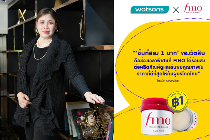 ปิดท้ายด้วย ไศลรัต บุญญวิตร Country Manager บริษัท ไฟน์ ทูเดย์ (ไทยแลนด์) ผู้จัดจำหน่ายทรีตเมนต์ยอดนิยมจากญี่ปุ่นแบรนด์ฟีโน่ (Fino) กล่าวว่า “เรายินดีที่ได้เป็นส่วนหนึ่งของแคมเปญนี้ เพื่อส่งต่อความสุขให้กับลูกค้าผ่านผลิตภัณฑ์ Fino Hair Mask ให้ทุกคนได้ดูแลเส้นผมด้วยผลิตภัณฑ์คุณภาพในราคาที่สมเหตุสมผลและคุ้มค่า ที่สุด”