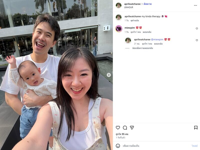 โดยพบว่าแม้ในอินสตาแกรมของหนุ่มแม็คจะไม่ได้ลงภาพภรรยาหรือลูก หรือไม่ค่อยได้เคลื่อนไหวในไอจีของเจ้าตัว แต่ในไอจีของภรรยาสาวมีการลงภาพลงคลิปของลูกน้อยน่ารักและสามีอย่างอบอุ่นมาโดยตลอดด้วย ทั้งยังโพสต์ล่าสุดภาพครอบครัวพ่อแม่ลูกน่ารักมากๆ พร้อมแคปชั่นด้วยว่า “my kinda therapy”