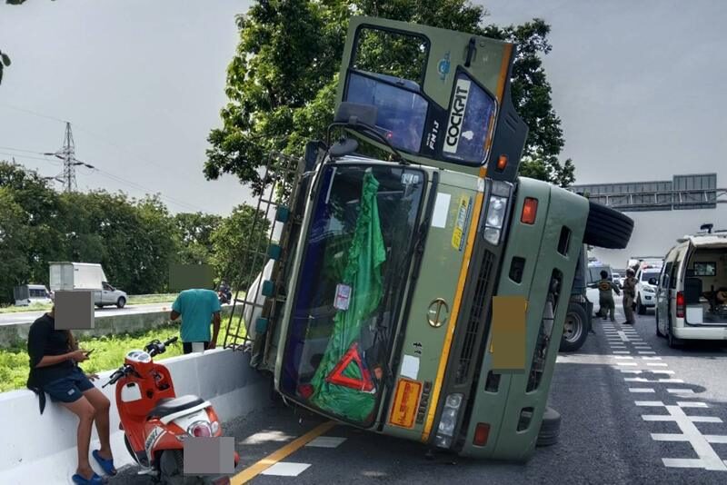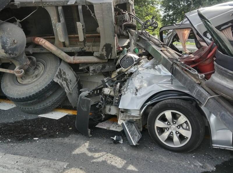 อ่านข่าวต้นฉบับได้ที่ : รถพ่วงเสียหลักเบียดทับ รถตู้ผู้แสวงบุญเจ็บเพียบ คนขับพ่วงเผยแหนบล้อหน้าหัก