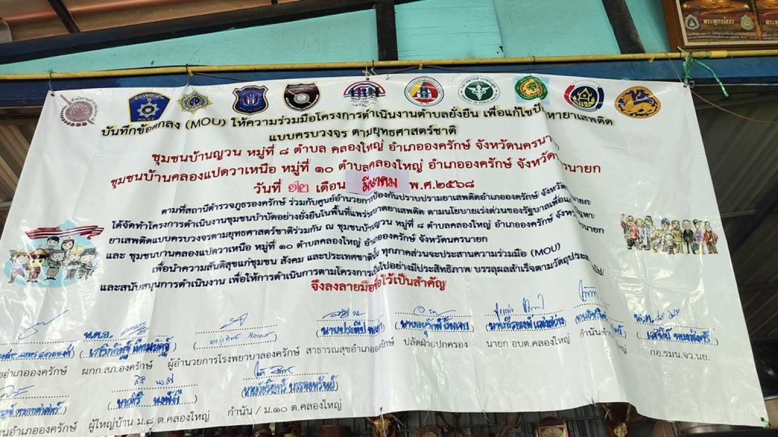 วันที่ 16 มิ.ย.68 นายวัชรินทร์ บรรจงทรัพย์ หรือกำนันโต้ง กำนันตำบลคลองใหญ่ อ.องครักษ์ จ.นครนายก กล่าวว่าได้ลงนาม MOU ร่วมกับ จังหวัดนครนายก ตำรวจภูธรภาค 2 ตำรวจ สภ.องครักษ์ กอ.รมน.นครนายก สาธารณสุขจังหวัดนครนายก และ หน่วยงานที่เกี่ยวข้อง จัดทำโครงการ ให้ความร่วมมือโครงการดำเนินงานตำบลยั่งยืนเพื่อแก้ไขปัญหายาเสพติดแบบครบวงจรตามยุทธศาสตร์ชาติ ตามนโยบายเร่งด่วนของรัฐบาลและกระทรวงมหาดไทย ชุมชนบ้านญวน ม.8 ต.คลองใหญ่ อ.องครักษ์ จ.นครนายก เมื่อวันที่ 12 มีนาคม 68 ที่ผ่านมา