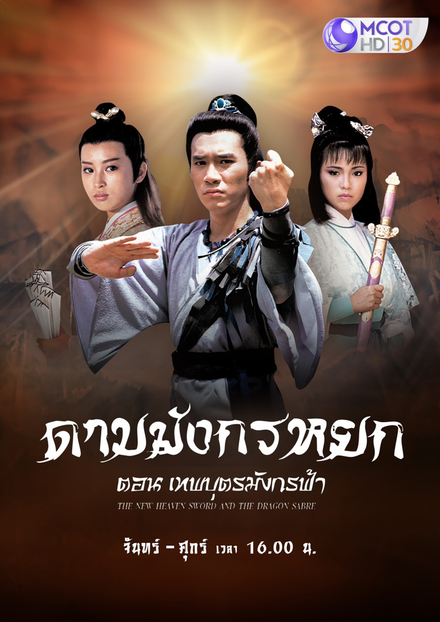 รับผังครึ่งปีหลัง “ช่อง 9” จับมือกับ บริษัท เอ็มวี ทีวี (ไทยแลนด์) จำกัด จัดหนัก จัดเต็มปล่อยของมาชุบจิตชุบใจแฟนหน้าจอที่ชอบการท่องยุทธภพไปกับซีรีส์จีน ล่าสุดพร้อมจัดซีรีส์จีนสุดยิ่งใหญ่ที่เป็นสุดยอดวรรณกรรมของ “กิมย้ง” นักเขียนชื่อดังในตำนานลงจอ กับซีรีส์เรื่อง “ดาบมังกรหยก” ตอน เทพบุตรมังกรฟ้า (The New Heaven Sword And the Dragon Sabre) พบกับนักแสดงชื่อดังมากฝีมือเพียบ เหลียงเฉาเหว่ย, เติ้งชุ่ยเหวิน, หลีเหม่ยเสียน, เส้าเหม่ยฉี, เยิ่นต๊ะหัว, เจิ้งอวี้หลิง,เป้าฟาง,เจิงเจียง ฯลฯ พร้อมตรึงยาว 5 วันรวด ทุกวันจันทร์ถึงศุกร์ เวลา 16.00 น. เริ่ม 22 ก.ค.นี้