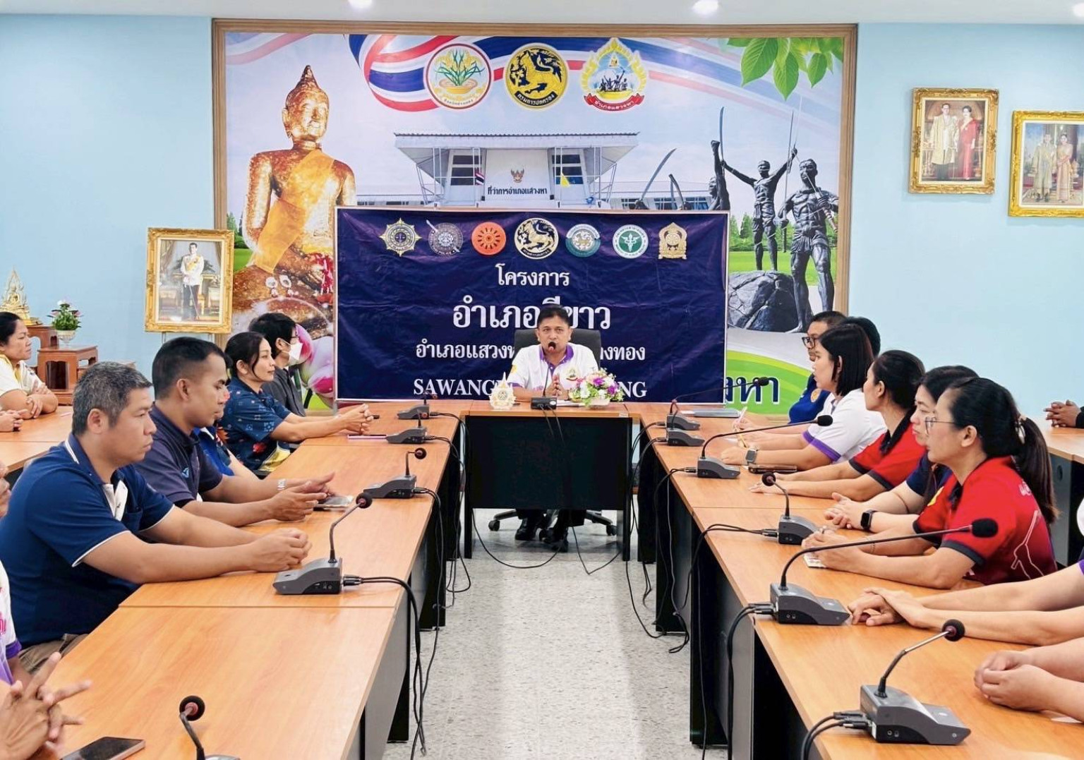 วันที่ 12 มิ.ย.68 นายนรินทร์ อร่ามโชติ นายอำเภอแสวงหา ได้ดำเนินกิจกรรมตามโครงการ "มหาดไทยสีขาว" สร้างพื้นที่ปลอดภัย หยุดยั้งยาเสพติด (Safe Zone No Drugs) เป็นการตรวจหาสารเสพติดบุคลากรในสังกัดทั่วประเทศ เพื่อยกระดับมาตรการป้องกันและปราบปรามยาเสพติดในหน่วยงาน โดยไม่ให้บุคลากรในสังกัดเข้าไปมีส่วนเกี่ยวข้องกับยาเสพติดในทุกรูปแบบ ณ ห้องประชุมอำเภอ ชั้น 2 ที่ว่าการอำเภอแสวงหา จังหวัดอ่างทอง