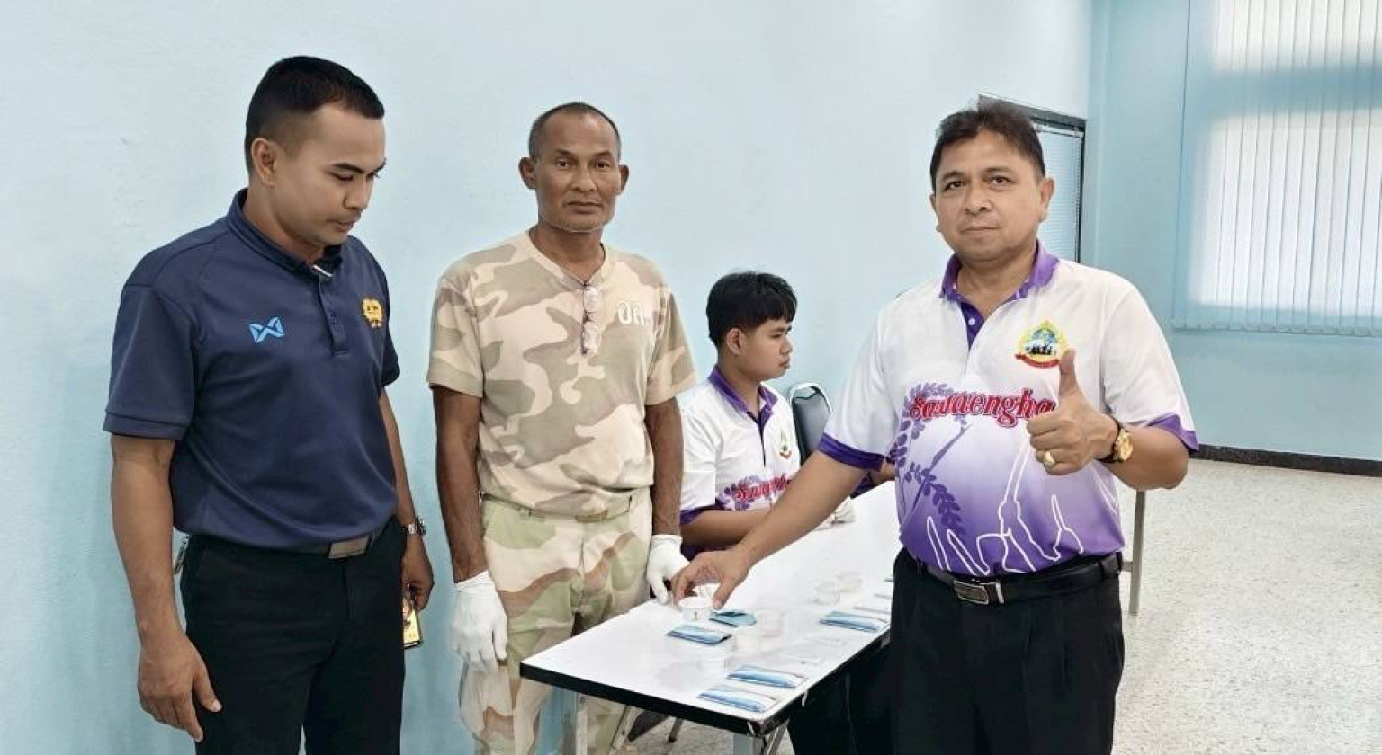 อนึ่งอำเภอแสวงหาได้ดำเนินการตรวจปัสสาวะหาสารเสพติดในร่างกายของ กำนัน ผู้ใหญ่บ้าน ฯลฯ ในการประชุมประจำเดือน กุมภาพันธ์ เมื่อวันที่ 3 กุมภาพันธ์ 2568 แล้ว ผลปรากฎว่าไม่พบสารเสพติดในร่างกายแต่อย่างใด