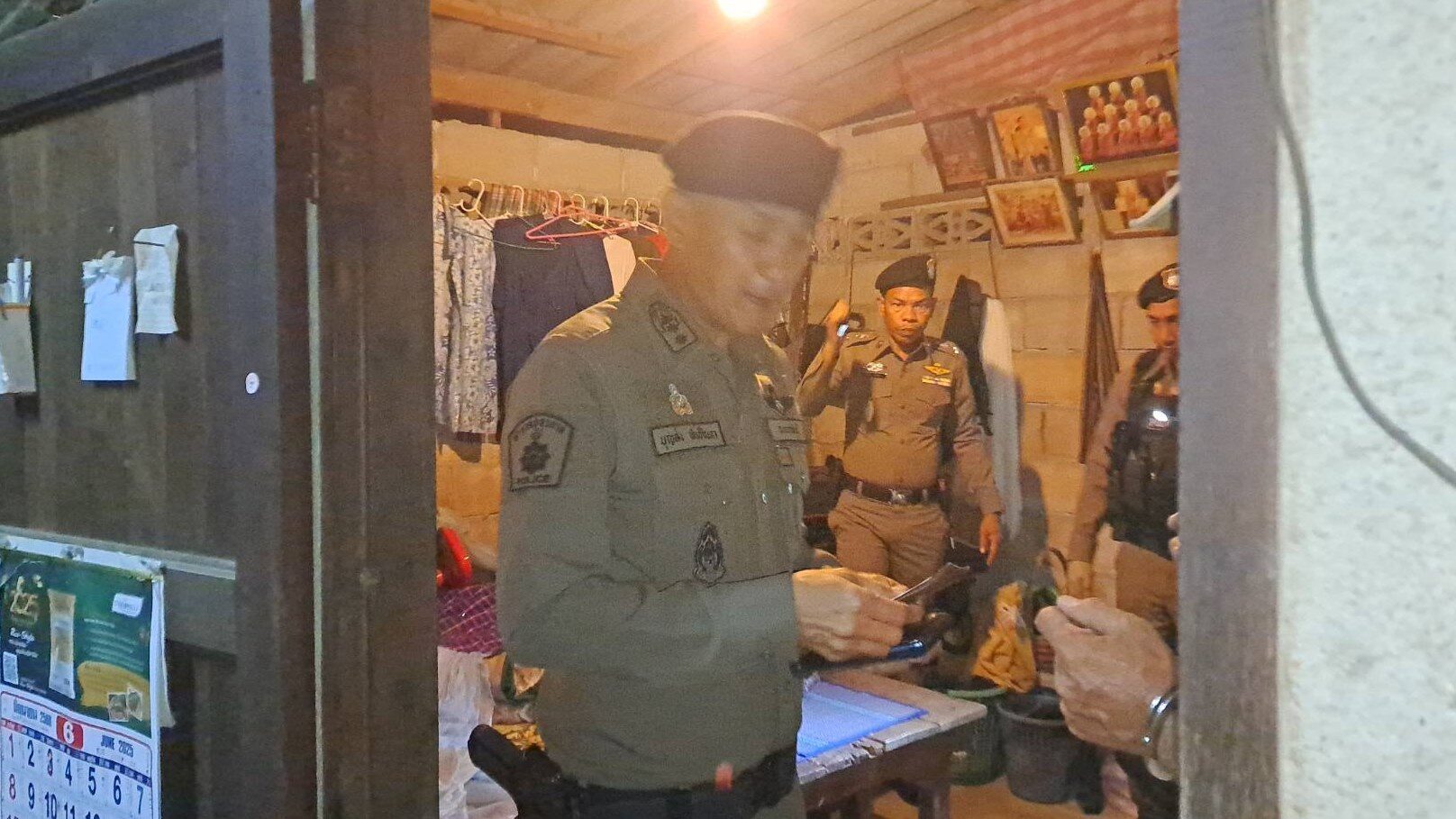 ที่เกิดเหตุ เจ้าหน้าที่กำลังเข้าจับกุม นายชัยรัตน์ (สงวนนามสกุล) อายุ 58 ปี มือปืน แอบอยู่ในบ้าน หลังจากเจ้าหน้าที่ได้เกลี้ยกล่อม ผู้ต้องหาจึงยอมมอบตัว และรับว่าเป็นคนยิง ส่วนอาวุธปืนนั้นหลังยิงเสร็จได้ว่างไว้หน้าบ้านข้างพุ่มไม้ พบเป็นอาวุธปืนลูกซองสั้นไทยประดิษฐ์ ผู้ต้องหาอยู่ในอาการเมาสุรา