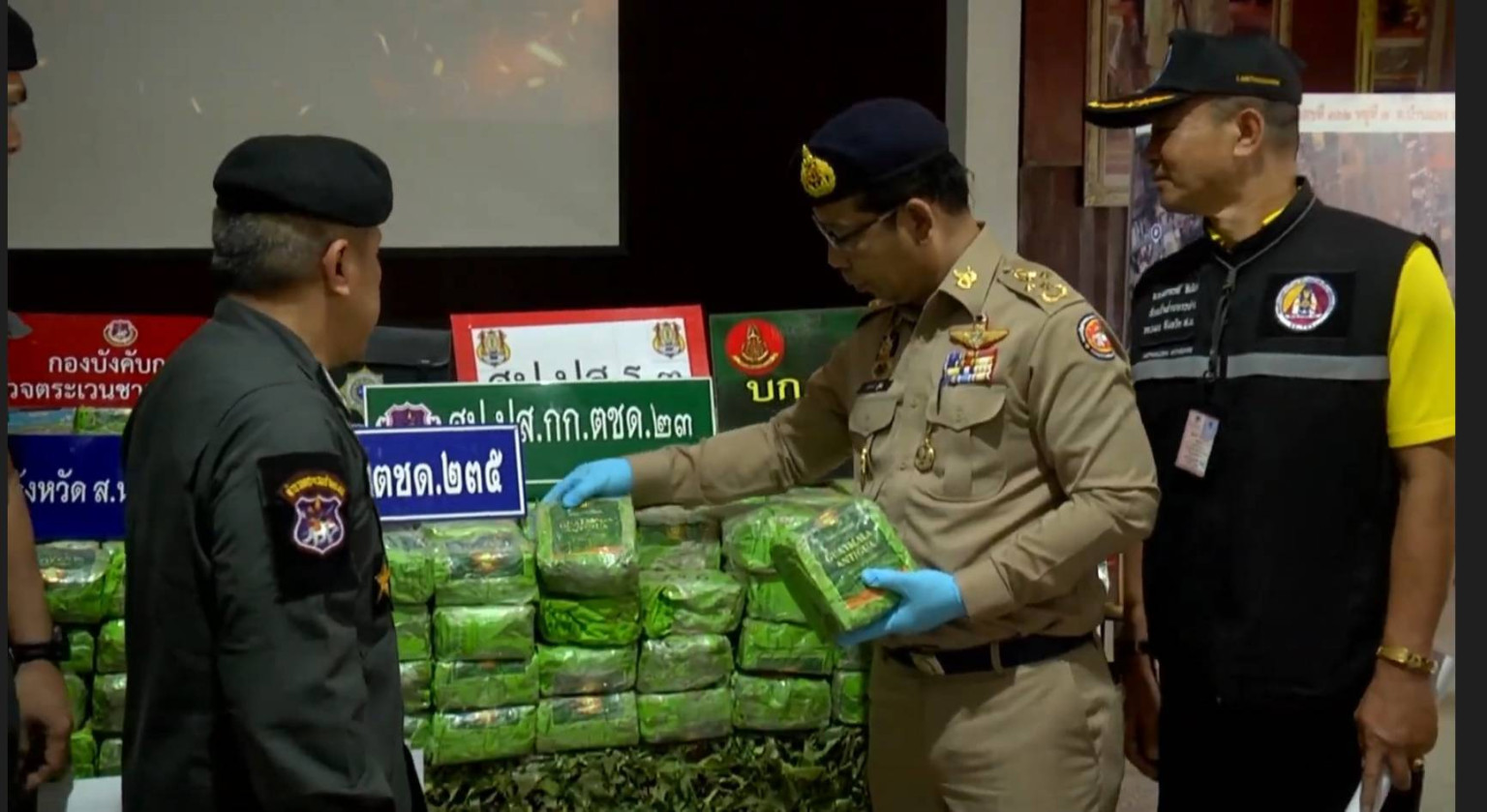 โดยเมื่อวันที่ 28 ก.ค. 2568 ชุดปฏิบัติการข่าว ร้อย ตชด.235 และ กองกำกับการตำรวจตระเวนชายแดนที่ 23 ,สืบทราบว่าจะมีกลุ่มผู้ค้ายาเสพติดลำเลียงยาเสพติดจากพื้นที่อำเภอบ้านแพง จังหวัดนครพนม แล้วนำไปพักในพื้นที่จังหวัดสกลนคร ก่อนจะส่งผ่านไปยังพื้นที่ตอนในของประเทศ จึงได้ประสานกับ ,กกล.สุรศักดิ์มนตรี ,ตำรวจน้ำ กก.10 บก.รน. ,ตำรวจภูธรจังหวัดนครพนม ,นรข.เขตนครพนม นายอำเภบ้านแพง ,สภ.บ้านแพง ได้ทำการสืบสวนจนทราบว่า กลุ่มผู้ค้ายาเสพติดได้นำยาเสพติดจำนวนมากเข้ามาพักไว้ในบ้านหลังหนึ่งในพื้นที่ อ.บ้านแพง จ.นครพนม ซึ่งเปิดเป็นร้านรับส่งพัสดุด่วน เมื่อทราบดังนั้นจึงได้รายงานให้ผู้บังคับบัญชา แล้วร่วมประชุมวางแผนจับกุม เจ้าหน้าที่ชุดจับกุมจึงได้วางกำลังซุ่มบริเวณรอบบ้านต้องสงสัย กระทั่งเวลาประมาณ 16.00 น. พบผู้ต้องหาจำนวน 6 คน ได้ช่วยกันลำเลียงกระสอบต้องสงสัยลงจากรถกระบะ 4 ประตูที่จอดอยู่ภายในบ้าน เจ้าหน้าที่จึงแสดงตัวขอตรวจค้น จากการตรวจสอบเบื้องต้นว่าพบเป็น ยาไอซ์ บรรจุอยู่ในกระสอบปุ๋ย จำนวน 11 กระสอบ เจ้าหน้าที่ชุดจับกุมจึงควบคุมตัวและตรวจยึดของกลางทั้งหมด ไปที่กองกำกับการตำรวจตระเวนชายแดนที่ 23 จ.สกลนคร เพื่อตรวจพิสูจน์ ผลการตรวจนับ พบยาไอซ์ น้ำหนักรวมกว่า 500 กก. เจ้าหน้าที่จึงแจ้งข้อกล่าวหาว่า “ร่วมกันจำหน่ายยาเสพติดให้โทษประเภท 1 (เมทแอมเฟตามีนหรือไอซ์) โดยการมีไว้เพื่อจำหน่าย อันเป็นการกระทำเพื่อการค้า ก่อให้เกิดการแพร่กระจายในกลุ่มประชาชนและทำให้เกิดผลกระทบต่อความมั่นคงของรัฐหรือความปลอดภัยของประชาชนโดยฝ่าฝืนต่อกฎหมาย” และส่งพนักงานสอบสวน สภ.บ้านแพง จ.นครพนม ดำเนินคดีตามกฎหมายต่อไป