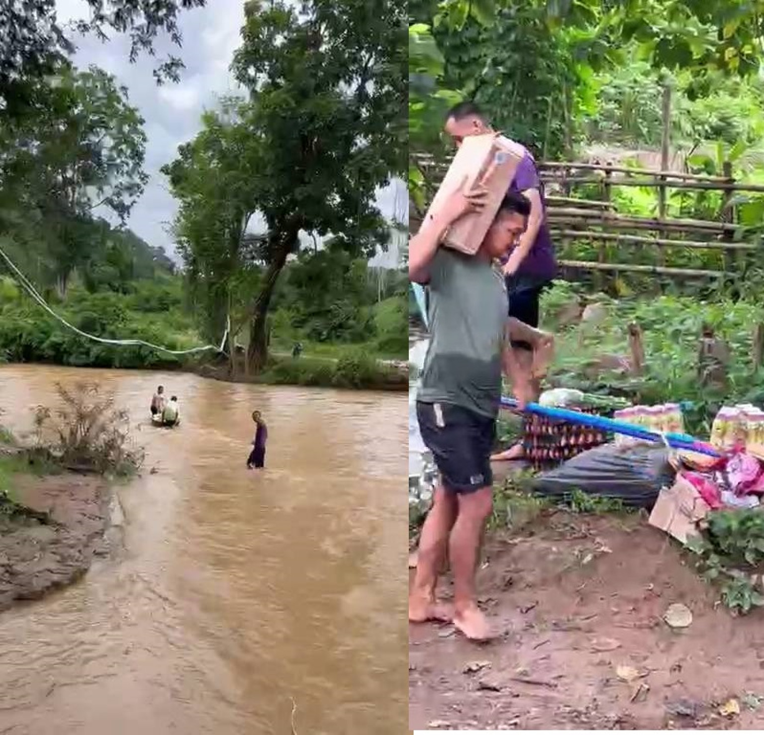 ส่วนที่ท่าแม่เหลอ ต.เสาหิน อ.แม่สะเรียง ผู้ใหญ่บ้านแม่เจ และ ชาวบ้านแม่เหลอ ครูศูนย์การเรียนรู้ ตำรวจตระเวนชายแดนบ้านแม่เหลอ ได้ช่วยกันขนอาหารกลางวันสำหรับเด็กๆ ข้ามลำห้วยแม่เงะ บริเวณท่าแม่เหลอ หลังปริมาณน้ำสูงรถไม่สามารถสัญจรไปมาได้