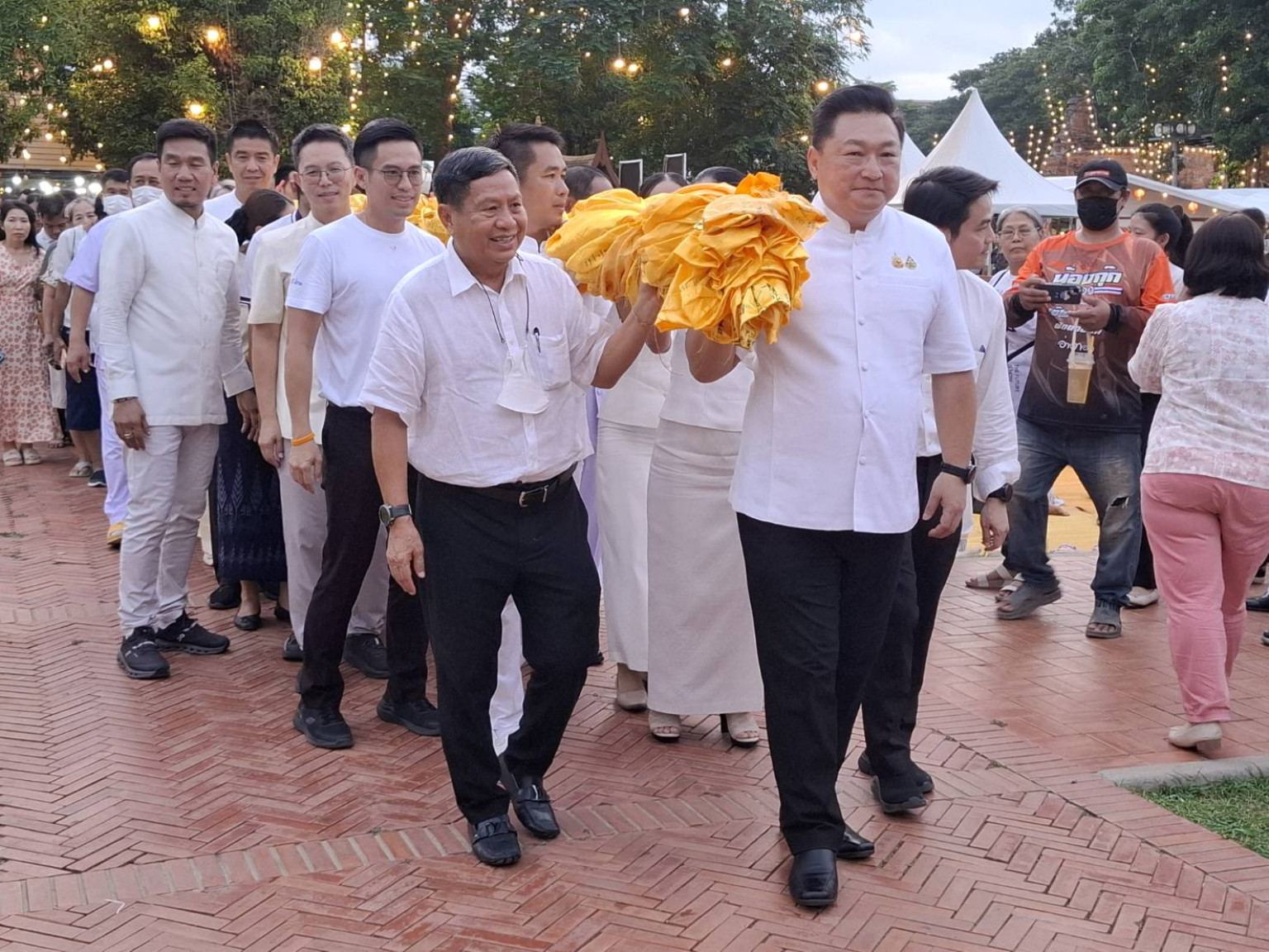 โดยมี ฯพณฯ สมศักดิ์ ปริศนานันทกุล อดีต รมว.เกษตรและสหกรณ์ และ รมว.ศึกษาธิการ นายไพบูลย์ ศุภบุญ รองผู้ว่าราชการจังหวัดอ่างทอง นายทัศนัย สุธาพจน์ รองผู้ว่าราชการจังหวัดอ่างทอง นางศุทธิกานต์ วงศ์สถิตจิรกาล นายกเหล่ากาชาดจังหวัดอ่างทอง นายภราดร ปริศนานันทกุล สมาชิกสภาผู้แทนราษฎรจังหวัดอ่างทอง เขต 1 นายกรวีร์ ปริศนานันทกุล สมาชิกสภาผู้แทนราษฎรจังหวัดอ่างทอง เขต 2 ผู้บังคับการตำรวจภูธรจังหวัดอ่างทอง ปลัดจังหวัดอ่างทอง หัวหน้าส่วนราชการ นายอำเภอ ผู้บริหารองค์กรปกครองส่วนท้องถิ่น กำนัน ผู้ใหญ่บ้าน และพุทธศาสนิกชนเข้าร่วมพิธี