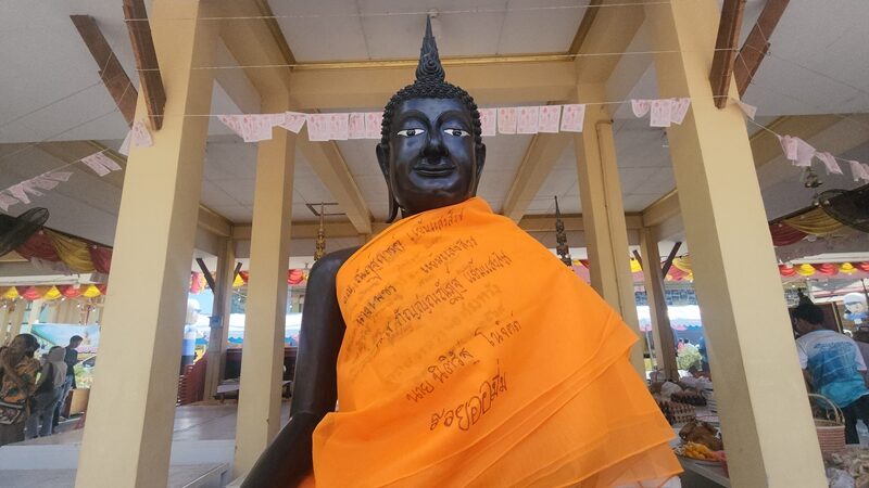 ขณะเดียวกันทราบว่า นายอภิวัฒน์ (ขอสงวนนามสกุล) อายุ 40 ปี ช่างรับเหมารายใหญ่ ทำฝ้าทาสี กล่าวว่า วันนี้ได้ชักชวนครอบครัวนำหัวหมู ไก่ต้ม ไข่ต้ม ผลไม้ พวงมาลัยและน้ำดื่ม ยกมาถวายแก้บนกับองค์หลวงพ่อสมหวัง