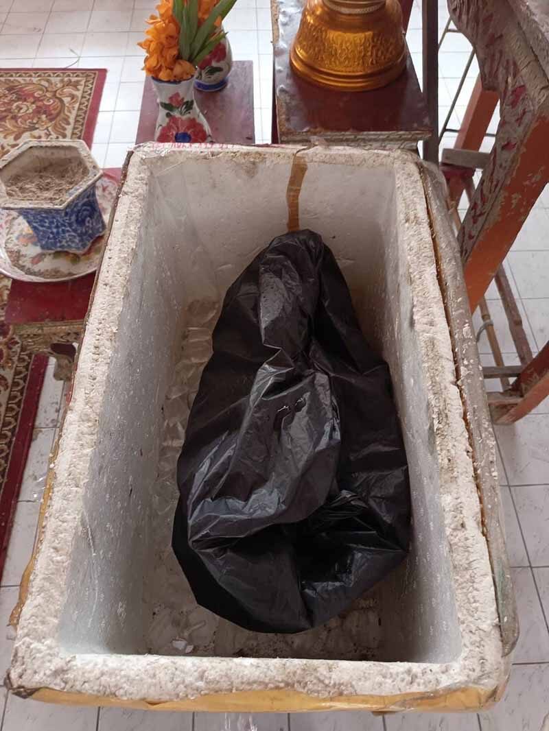 เร่งติดตามชาย 2 คน นำศพเด็กทารก ยัดลังโฟมแช่น้ำแข็ง ทิ้งศาลาวัดไผ่เลี้ยง