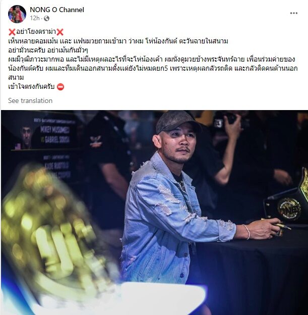 โดย “ราชันฆ่าไม่ตาย” น้องโอ๋ ฮาม่ามวยไทย ได้โพสต์ข้อความผ่านเฟซบุ๊ก NONG O Channel ชี้แจงในเรื่องดังกล่าวว่า อย่าโยงดราม่าเห็นหลายคอมเมนต์ เเละ เเฟนมวยถามเข้ามา ว่าผม โห่น้องตะวันฉาย (กันต์) ในสนาม อย่ามั่วนะครับ อย่าเมนต์กันมั่วๆ