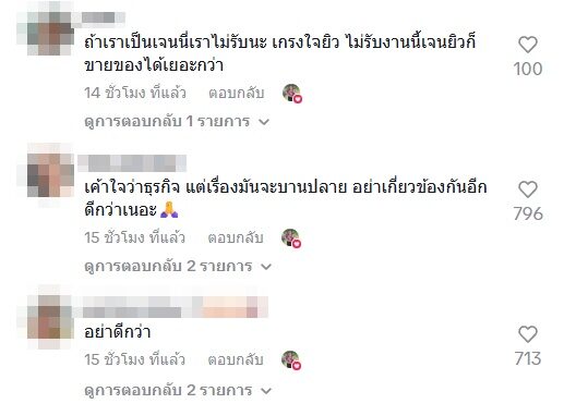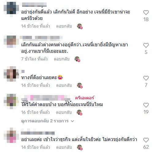 ทั้งนี้ก็มีคอมเมนต์วิพากษ์วิจารณ์ต่างๆ นานา หลายมุมแต่ส่วนใหญ่ก็มองว่าเจนนี่ไม่น่าจะรับงานนี้ อาทิ จริงๆไม่ควรจะยุ่งกันแล้วนะไม่ว่าในสถานะไหนจะดีกว่า , เค้าใจว่าธุรกิจ แต่เรื่องมันจะบานปลาย อย่าเกี่ยวข้องกันอีกดีกว่าเนอะ , อย่าเลยค่ะ เข้าใจว่าธุรกิจ แต่เห็นใจยิวค่ะ ไม่ควรยุ่งกันดีกว่า , เป็นเราไม่รับ เกรงใจสามี เป็นต้น