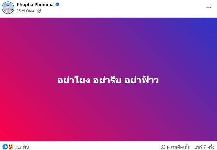 ด้าน ภูผา เพื่อนสนิท ขนม ก็โพสต์ว่า “อย่าโยง อย่ารีบ อย่าฟ้าว” โดยมีแฟนๆ ยังเข้าไปวิพากษ์วิจารณ์กันต่างๆ นานาอีกถึงเรื่องนี้ว่าเกิดอะไรขึ้นหรือเปล่า