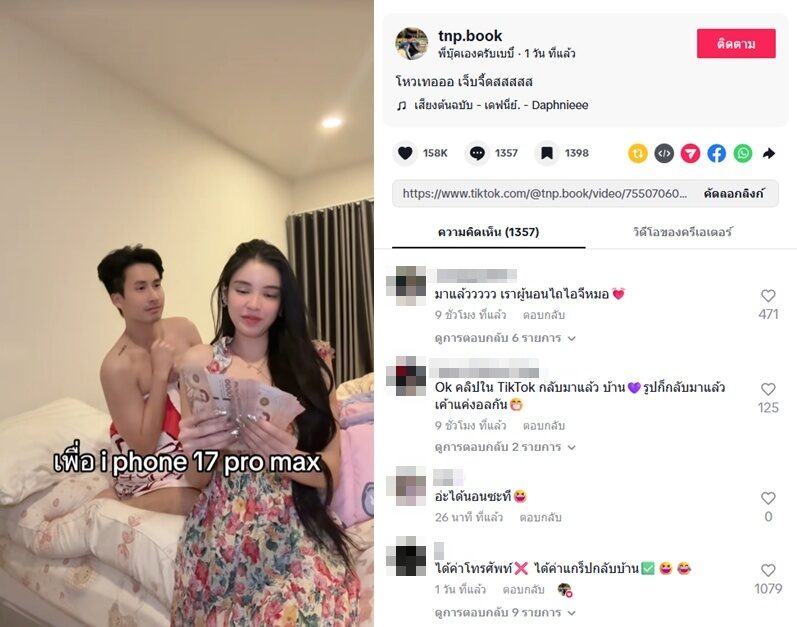 แห่ใส่ใจคลิป ขนม ศศิกานต์ ในติ๊กต็อก หมอบุ๊ค หายไปไหนหมด เพื่อนโพสต์แล้ว