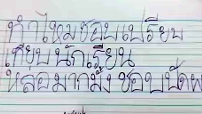 การสอนการกระทำจนเด็กๆกดดันคะ อยากให้สื่อช่วยมาถามเด็กๆที่เรียนกับครูคนนี้ว่าได้วิชาความรู้อะไรบ้าง กับที่ครูคนนี้สอน และก็ครูทุกคนที่โรงเรียนว่า ครูคนนี้มีพฤติกรรมเป็นยังไงบ้างคะ โดยในคลิปปรากฏข้อความเขียนด้วยลายมือของเด็ก มีบางข้อความระบุว่า ทำไมชอบเปรียบเทียบนักเรียน หล่อมากมั้ง ชอบปัดผม จนกลายเป็นที่วิพากษ์วิจารณ์ในโซเชียล