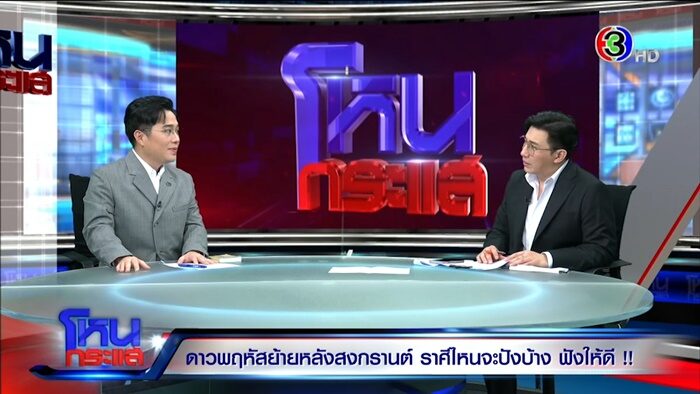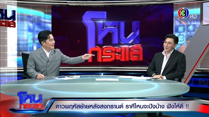 รายการโหนกระแส ออกอากาศวันที่ 13 เม.ย. 66 ดำเนินรายการโดย “หนุ่ม กรรชัย กำเนิดพลอย” ผลิตในนามบริษัท ดีคืนดีวัน จำกัด ออกอากาศทุกวันจันทร์-ศุกร์ เวลา 12.35 น. ทางช่อง 3 กดเลข 33 ได้เปิดใจสัมภาษณ์ “หมอช้าง ทศพร ศรีตุลา” ดาวพฤหัสย้ายหลังสงกรานต์คือวันที่ 19 เม.ย. ราศีไหนจะปัง ฟังให้ดี!