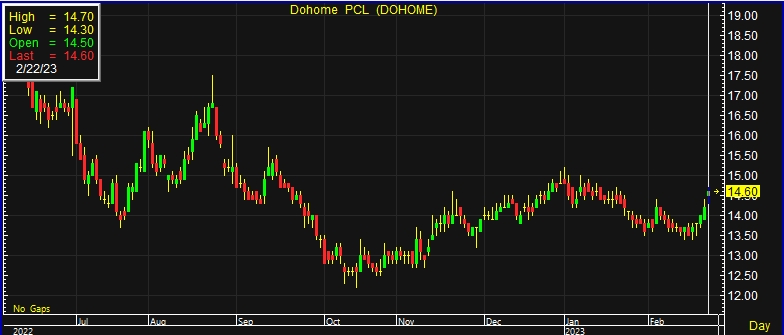 DOHOME วิ่ง 3% เก็งรับปันผลหุ้น-เงินสด โบรกชี้กำไรปี 66 ทะลุ 1.7 พันล้าน อัพเป้า 17 บ.