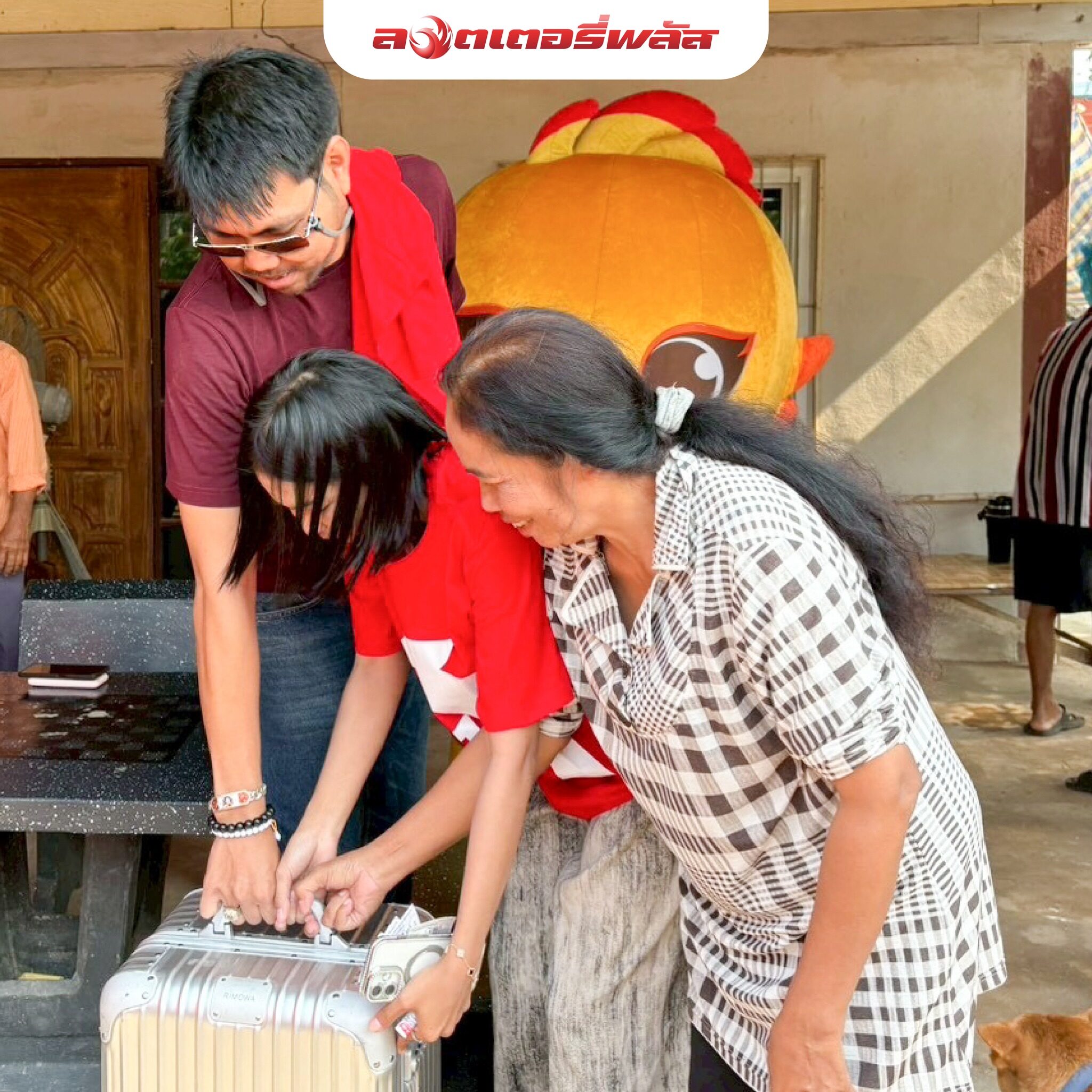 ทั้งนี้ นอท ได้นำของขวัญสุดพิเศษ คือ ภาพวาดคุณออย และ โมเดลจิ๊ดริด รุ่นแรร์ ที่ลอตเตอรี่พลัสสั่งทำเพื่อมอบให้เฉพาะลูกค้าที่เดินทางไปส่งโชคให้ถึงมือเท่านั้น