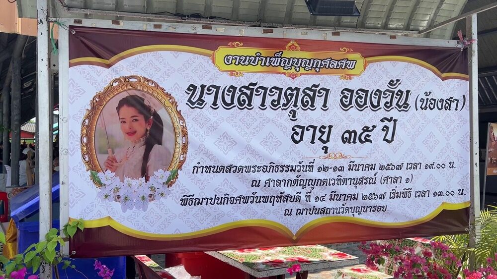 เมื่อเวลา 14.00 น.วันที่ 14 มี.ค.67 ที่วัดบุญนารอบ ต.ในเมือง อ.เมือง จ.นครศรีธรรมราช สถานที่จัดงานศพของ "น้องสา" สาวเมียนมาที่ถูกอดีตแฟนคือนายพิทญา บุญญัติศักดิ์ หรือ "นาย" อายุ 27 ปี ฆ่าแล้วหมกศพไว้ในบ่อกุฏิร้างวัดท้าวโคตร ต่อมาเจ้าหน้าที่จับกุมนายพิทญาได้ และให้การรับสารภาพตลอดข้อกล่าวหา ถูกนำตัวไปฝากขังที่ศาลจังหวัด