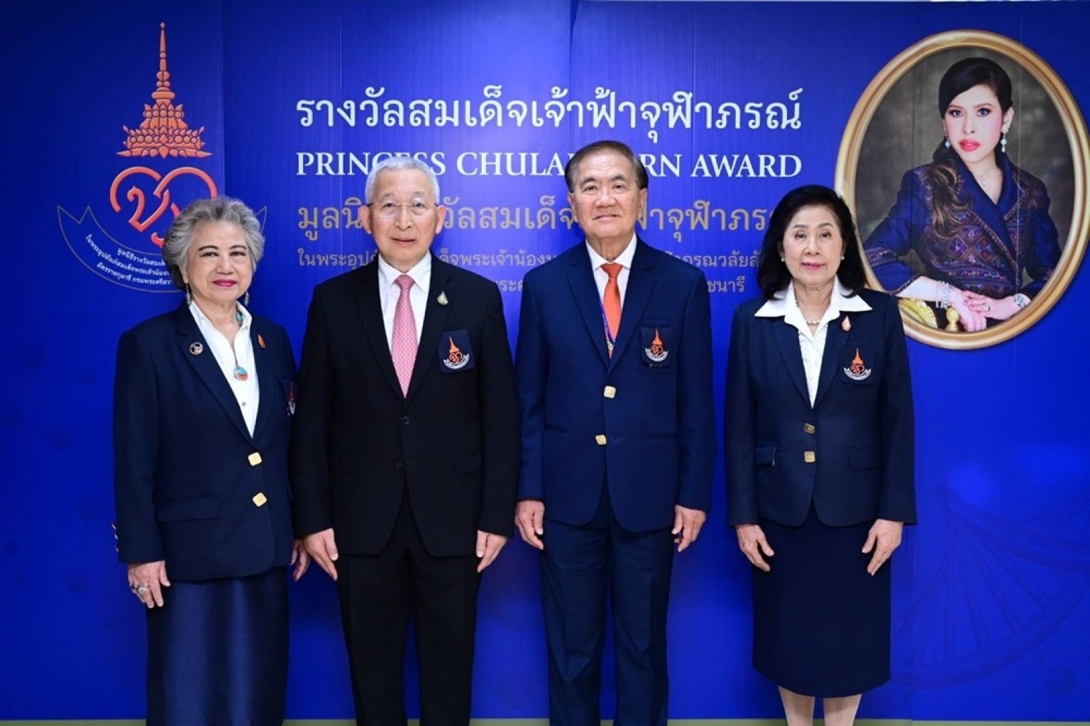 รัชตะนาวิน รักษาการรองเลขาธิการราชวิทยาลัยจุฬาภรณ์ และรองประธานกรรมการมูลนิธิรางวัลสมเด็จเจ้าฟ้าจุฬาภรณ์ ในพระอุปถัมภ์ฯ รองศาสตราจารย์ ดร.ทัศนา บุญทอง กรรมการและเลขาธิการมูลนิธิรางวัลสมเด็จเจ้าฟ้าจุฬาภรณ์ ในพระอุปถัมภ์ฯ ศาสตราจารย์ แพทย์หญิงจิรพร เหล่าธรรมทัศน์ กรรมการประชาสัมพันธ์มูลนิธิรางวัลสมเด็จเจ้าฟ้าจุฬาภรณ์ ในพระอุปถัมภ์ฯ นายธนวัต ศิริกุล รองอธิบดีกรมสารนิเทศ กระทรวงการต่างประเทศ และ Dr. Bill Davis, Representative of American ambassador to Thailand ได้ร่วมกันแถลงผลการตัดสินผู้ได้รับพระราชทาน“รางวัลสมเด็จเจ้าฟ้าจุฬาภรณ์” ครั้งที่ 1 ประจำปี 2566 ณ ห้องประชุมใหญ่ ชั้น 3 สำนักงานราชวิทยาลัยจุฬาภรณ์ เขตหลักสี่ กรุงเทพมหานคร