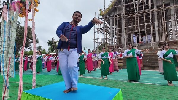 ซึ่งได้มีการโปรยเหรียญหว่านทานไปทั่วพิธีเพื่อเป็นการเปิดทรัพย์จากวังบาดาลให้โชคกับผู้ที่มาร่วมงานบุญครั้งนี้ จากนั้นได้มีนางรำกว่า 200 คน ร่วมรำถวายรอบอุโบสถอย่างสวยงาม