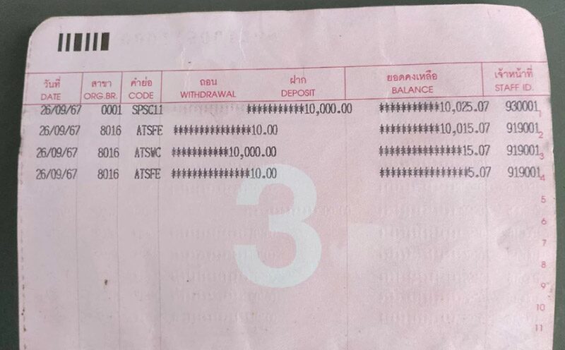 เงินในบัญชีถูกกดออกไป 10,000 บาท เหลือแค่ 5 บาท