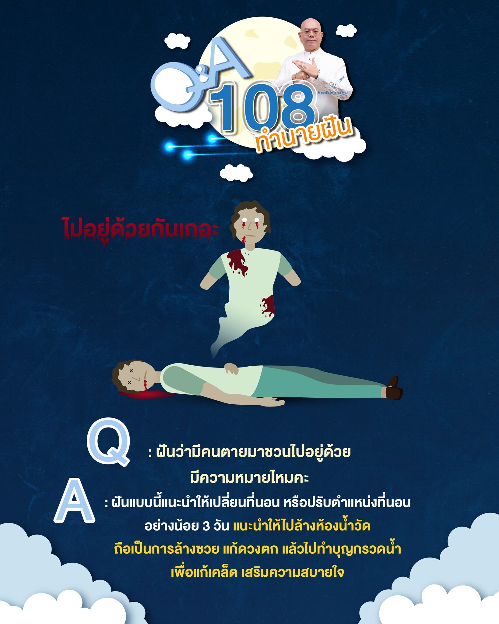อ่านข่าวต้นฉบับได้ที่ : ฝันมีคนตายชวนไปอยู่ด้วย ซินแสเป็นหนึ่ง เผยดีหรือไม่ดี แนะวิธีแก้ดวง ล้างซวย