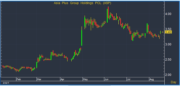 ผู้สื่อข่าวรายงาน วันนี้(17ส.ค.64)ราคาหุ้นบริษัท เอเซีย พลัส กรุ๊ป โฮลดิ้งส์ จำกัด (มหาชน) หรือ ASP ณ เวลา 10.33 น. อยู่ที่ระดับ 3.40 บาท บวก 0.16 บาท หรือ 4.94% ด้วยมูลค่าซื้อขาย 68.77 ล้านบาท