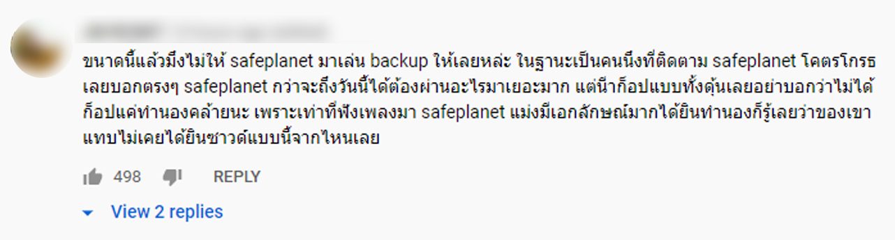 แฟนคลับวงเซฟ แพลนเน็ต จึงเข้ากันไปถล่มกดดิสไลก์และโพสต์แสดงความคิดเห็นในคลิปวิดีโอดังกล่าวกว่า 2 พันคอมเมนต์จนทางช่องเฉลิมศรีต้องปิดคอมเมนต์ไป